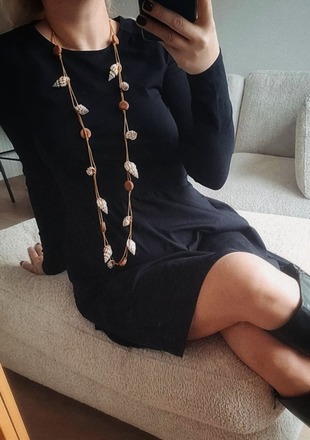 Rankų darbo kaklo papuošalas su natūraliomis jūrinėmis kriauklytėmis. Ilgas, todėl eina apsivynioti aplink kaklą keliomis eilėmis.