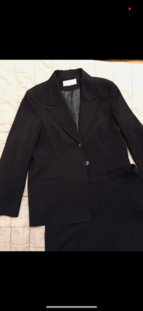 Prailgintas švarkas, laisvos, tiesaus kirpimo kelnės.