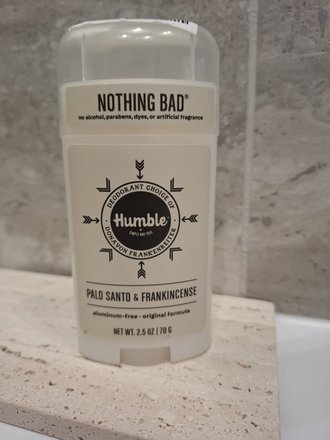 Populiarusis Humble Brands kreminis-pieštukinis dezodarantas. 70 gr. Palo Santo smilkalų kvapo.
