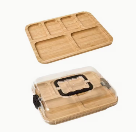 Stilingas ir funkcionalus užkandžių padėklas – puikus pasirinkimas serviruojant sūrį, vaisius, riešutus ar kitus užkandžius. Pagamintas iš natūralaus bambuko, su skaidriu dangčiu, kuris apsaugo maistą nuo dulkių ir vabzdžių.